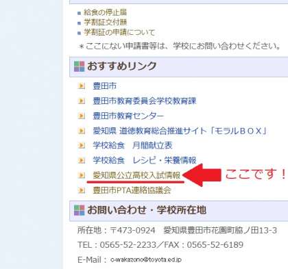愛知県公立高校の入試情報へのアクセスリンクをつくりました。