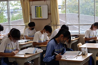 来週の月曜日から前期期末テストが始まります。テストに向けて、何度もワークやキュビナで復習している姿がみられました。今までの学習の成果が発揮できるように、体調に気を付けて頑張っていきましょう!