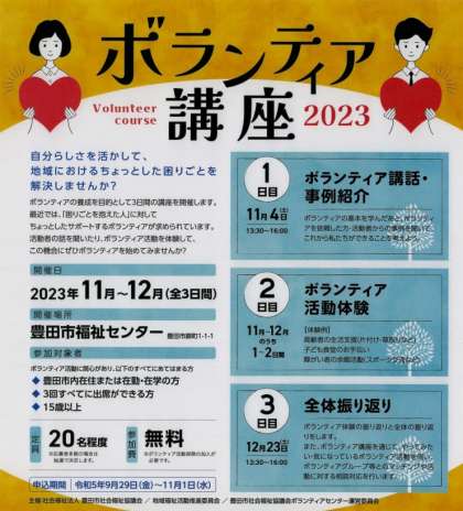 ボランティア講座の案内が、豊田市社会福祉協議会ボランティアセンターが届きました。