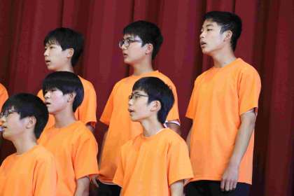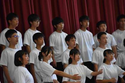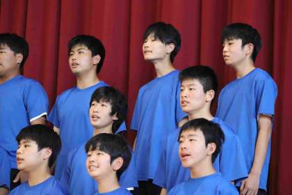 合唱発表会に向けて、休み時間にたくさん練習をしてきました。その成果を本番で発揮し、美しい歌声を体育館いっぱいに響かせていて、感動する合唱でした。