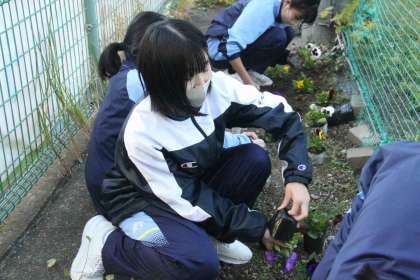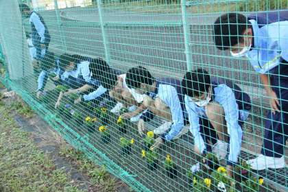 2年生は月曜日にフラワーロードにお花植えをしました。上手に間隔をあけるために事前にどこに植えるか考えながら取り組みました。