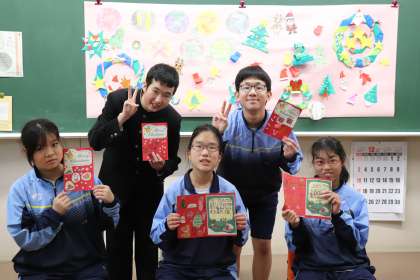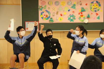 今日は待ちに待ったクリスマス交流会がありました。フレンド学級の素敵な演奏とクリスマスソングの発表を披露してくれました。また、素敵なクリスマスカードもプレゼントしてくれました。中学生はクイズを発表して会場を盛り上げました。ビンゴゲームのサポートをしているときは、元気いっぱいの小学生に囲まれた中で、頼りになるお兄さん、お姉さんをしている中学生らしい姿が見られました。みんなにとってとても楽しく、良い思い出になりました。
