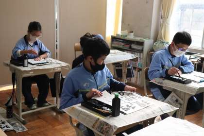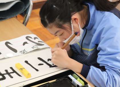 火曜日に行われた書き初め大会の様子です。墨の量を調節して文字の太さに気を付けながら書くことができました。また見本を見ながら、1枚1枚丁寧に書くことができました。約2時間、しゃべらず集中して取り組む姿がみられました。
