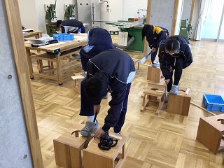 1年生の技術ではヒノキを使い木材加工をしていました。