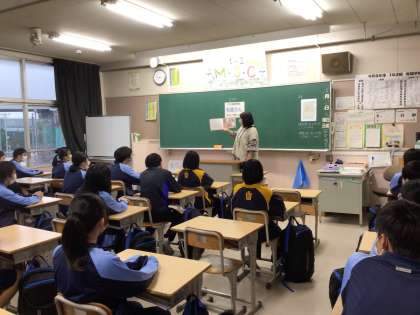 毎月、ボランティアグループ「マザーグース」によって読み語りを行っていただいています。今月は、1年生で実施していただきました。