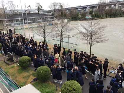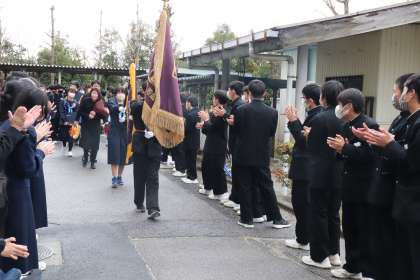 雨も上がったので外に出て、全校で先輩方の門出を見送りました。