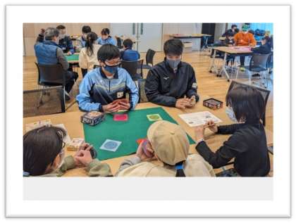 3月3日、若園交流館において、若小・若中共働本部主催のボードゲーム会が行われました。若中生3年生3名、2年生2名の5名がボランティアとして、参加しました。