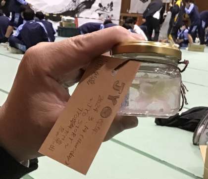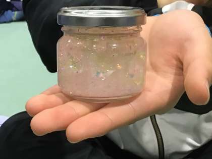 キラキラとラメが漂う綺麗な小瓶のスーベニアができました。