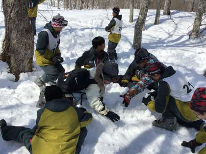 昼食後、お散歩に出かけました。スキー見学チームはかまくらを作るそうです。