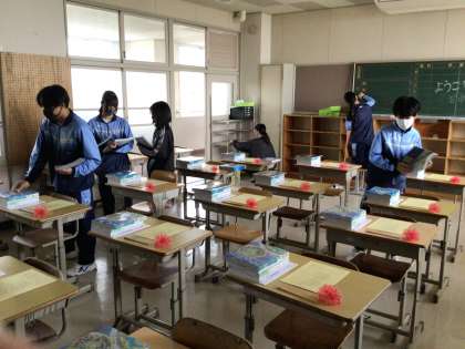 新3年生が入学式に向けて準備をしています。
