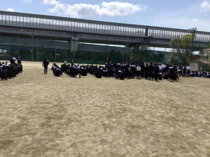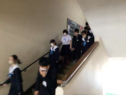 事前に教室で避難の仕方、避難経路を確認しました。担任の先生の先導のもと、新しい教室から運動場へ避難しました。