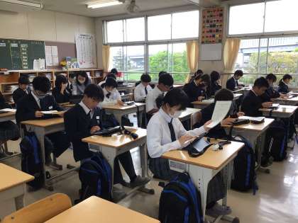 タブレットの使い方や、学習時の使用方法の確認をしました。設定に困っている友達に優しく声をかけ、お互いに助け合っている姿が見られました。