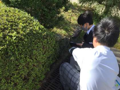 「若中の植物マップを作ろう」の学習で、校内の植物を分類しながら地図に分布をまとめました。まとめを通して、南側と北側では植物の種類や量、背丈の高さ、花の数、コケの量などが異なることに気付きました。