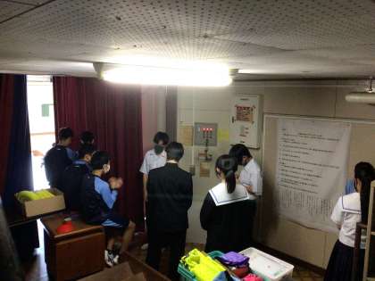 5月になったばかりですが、3年生は11月の体育祭の応援に向けて動いています。最高の演技のために、7日の5限は全校集まっての組団会を行います。リハーサルもしっかり打ち合わせをしていました。