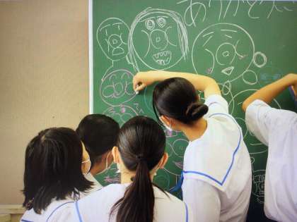 担当クラスの生徒は、黒板を飾り付け、レクリエーションを行いました。