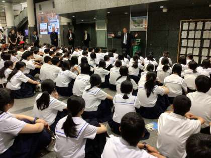 見学前に国会議員の八木先生から、環境副大臣としてSDGzなど身近な問題についてお話しいただきました。