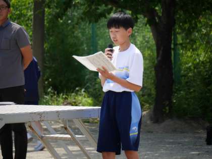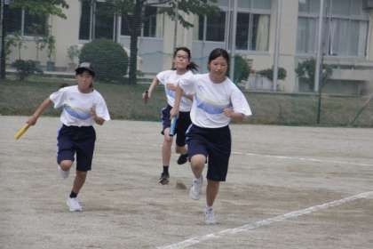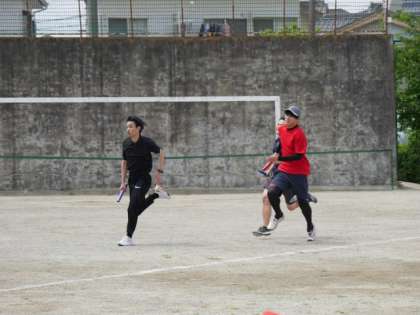 第1走者は担任の先生。先生たちからのバトンがみんなにつながりました。