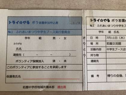 *ボランティア保険の申し込みは後日になります