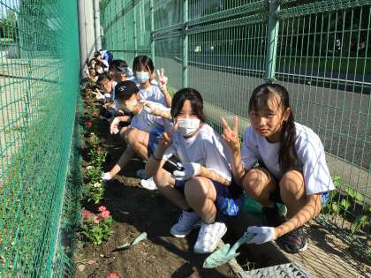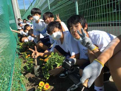 6/19の若Tの時間に、3・4組の生徒がトヨタ車体さんからいただいた花を植えました。
