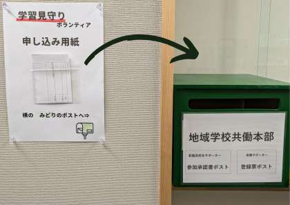 2 交流館、共働本部掲示板にて用紙記入後、横のポストへ