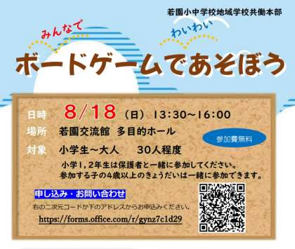 地域学校共働本部より〜ボードゲームであそぼう・学用品リサイクル募集