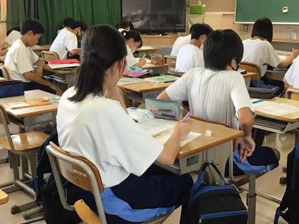 自習の時間には、黙々と集中して勉強したり、友人と教え合ったりする生徒の姿が見られました。