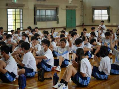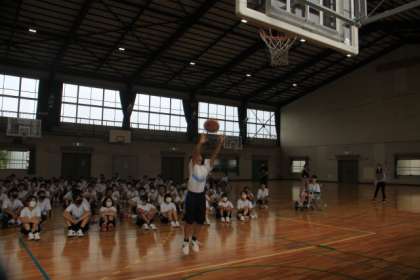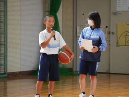 9/26の若Tにて、これから迎える音楽発表会や体育祭に向けて、クラスの団結力を高めたいという目的のもと、「団結力にTRY!クラス対抗、フリースロー対決!」を行いました。やり方の説明をした際に、企画した藤原さんが一発でシュートを決め、学年全員で盛り上がる場面がありました。競技中もクラスの仲間を応援する声であふれた時間になりました。