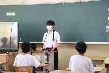 わかりやすい説明とは何か、見やすいパワーポイントはどんなものか、というものを友達と協働的に考え、土日休みでしっかりと準備してきた様子が、堂々と発表する生徒の様子から感じられました。