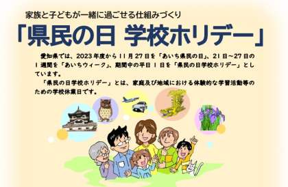 豊田市では、11月22日を愛知県民の日学校ホリデーとして、休校となります。