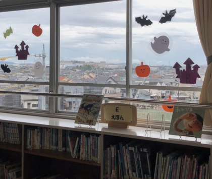 \小学校ブックランドがハロウィン飾りで賑やかになりました/