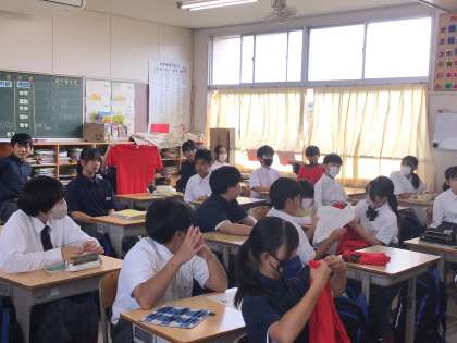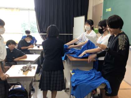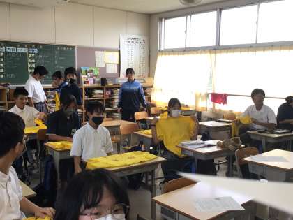 完成したTシャツを1年生の教室まで持ってきてくれました。