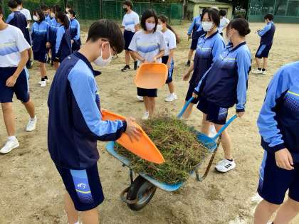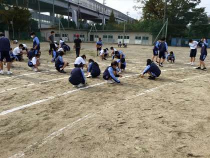 体育祭に向けて、3年生が中心となり、組団で草抜きをしました。