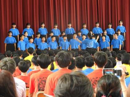 今年も子どもたちの素敵な歌声を聴くことができました。体育祭でも若中生の活躍が楽しみです。