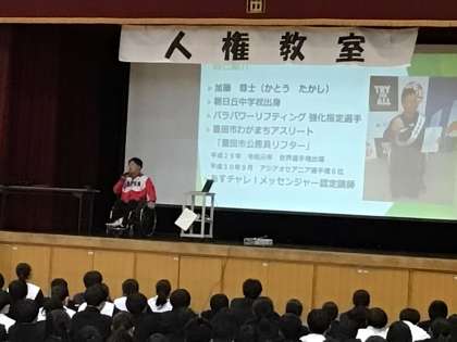 豊田市役所職員でもあり、パラアスリートでもある加藤尊士さんをお招きしての人権講演会でした。
