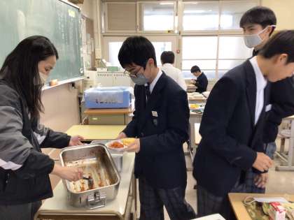 1年4組では、余った豆乳プリンタルトのジャンケンで盛り上がっていました。