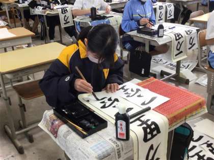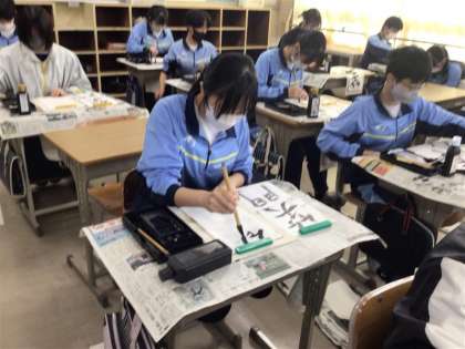 年の初めは書き初めです。