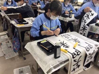 1,2年生 書き初めの様子