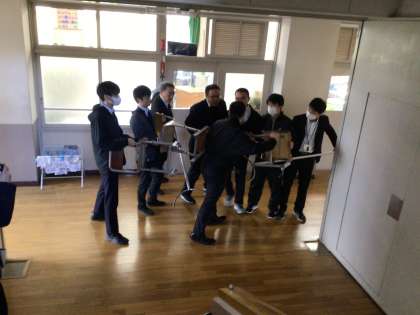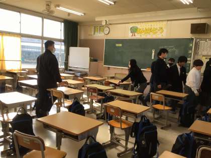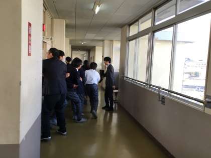 豊田警察署の方に協力いただき、学校に不審者が侵入した想定のもとで、教室内の対応や避難の仕方を確認しました。