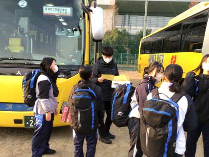 朝の健康観察を行い、自然教室に出発しました。
