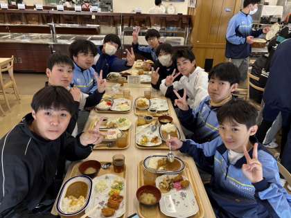 スキー班ごとに昼食を食べ、午後の研修に向かいます