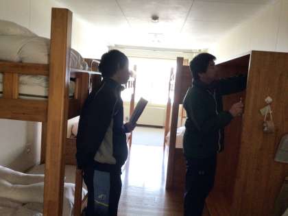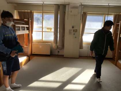 片付けと、3日間お世話になった施設に感謝を込めて清掃をし、各部屋長が所員の方の最終点検を受けています。