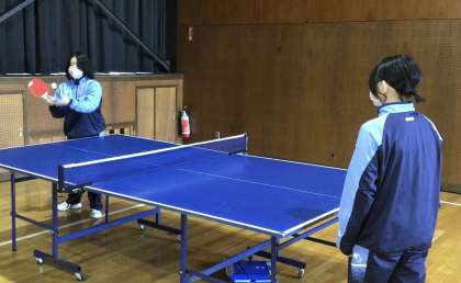 1年生の保健体育では、先週から卓球とバトミントンを行なっています。今日は、ラケットの握り方とボールにした回転をかける方法を学びました。ラリーすることに苦労している様子でしたが、うまくいった時には喜びの声が上がっていました。