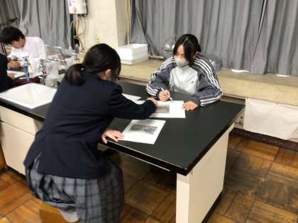 1年生の理科の学習では、『若園学区の大地』をテーマに学習しています。7年前に若園地区で撮影・取材した内容から、(1)若園地区の地層には粘土層があること、(2)その粘土を常滑にもっていって焼き物に使用していることがわかりました。それらの事実から『なぜ若園地区に粘土層ができたのか?』などの疑問が生徒たちから生まれたため、それらについて学習を掘り進めています。単元の最後には、そのなぞが解けているでしょうか…