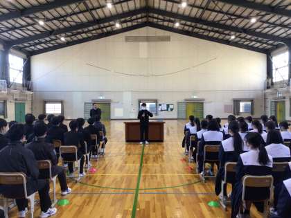 第一回目の卒業式の練習は、係の生徒から卒業式をよりよくするために、気持ちの高まるお話からスタートしました。JYO学年の生徒は、このお話にしっかり応えて今日から練習をスタートしました。