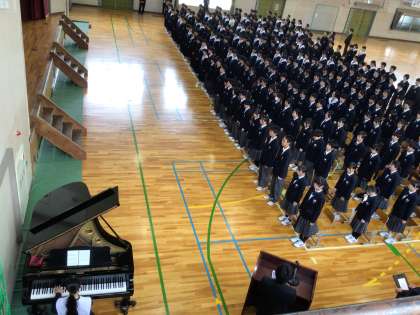 校長先生のお話と校歌斉唱です。