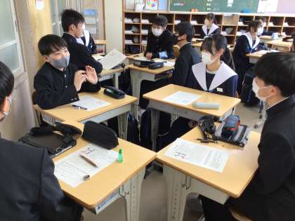 「夜23時にテスト勉強をしているときに、友人からメッセージが送られてきたらどうするか」というテーマを設定し、班で話し合いをしました。