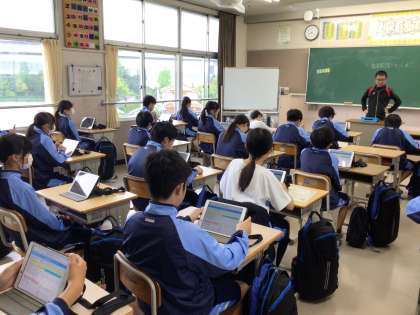 今週はSNS週間です。昨日の帰りの会で、担任から、便利な反面、使い方を間違えるとトラブルになるSNSを正しく使うように話しがありました。写真は、朝の会で学習用タブレットを通じて、連絡を確認している様子です。健康にも影響があるため、正しい姿勢で見るように、学習用タブレットを立てかけて画面を見るようにしています。今週土曜日5時間目のの授業参観は、SNS週間に合わせて、デジタルシティズンシップ教育を行います。お時間がありましたらぜひご参観ください。学校での教育の範囲にはなりますが、これらを通じて正しくスマホやタブレット、パソコンを使えるようになることを目指しています。ご家庭でも、これを機会にSNSについて話題にしてみてください。