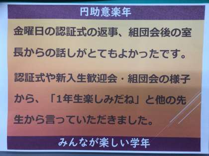 今日も1日、円助意していきましょう。みんなが楽しい学年になりますように。