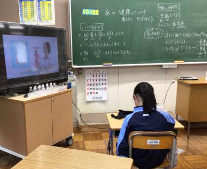 スマイル学級、自立活動の時間に歯磨きについて学びました。