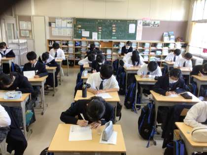 若中タイム(帰りの会の前の10分間)を活用し、簡単なテストを行っています。今日から購入したワークを使用してテストに臨んでいます。休み時間も勉強する様子がありました。みんなで勉強する良さを実感して、学力向上をねらいます。